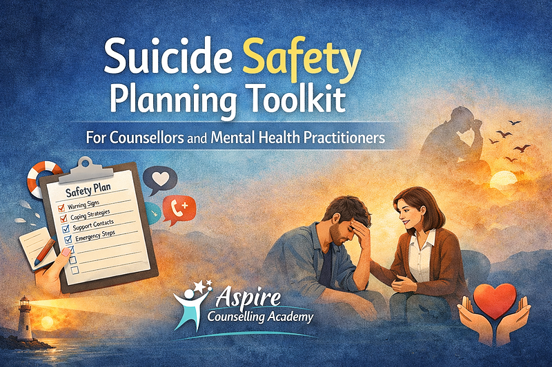 This resource has been developed by Aspire Counselling Academy, a specialist training provider supporting counsellors and mental health practitioners in developing safe, ethical and effective practice. Aspire Counselling Academy provides CPD training, specialist counselling qualifications, and professional toolkits and downloadable resources designed to support counsellors working in complex areas of practice, including suicide and suicidal ideation. To learn more about training opportunities and professional development, visit: www.aspirecounsellingacademy.co.uk
